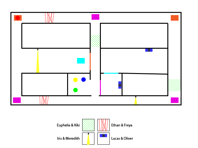 Euphelia: "Yeah, I'm trying something. We need to activate the orange door, and we need to get Meredith and Iris back to the cyan switch."